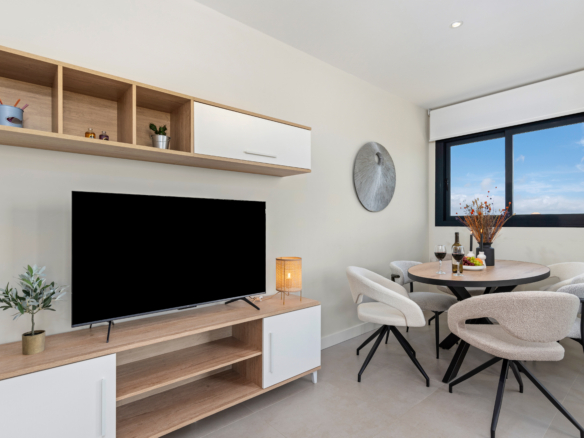 Appartement te koop Lo Pagán is een ideale combinatie van comfort, ligging en direct gebruiksgemak. In het gezellige Lo Pagán, onderdeel van San Pedro del Pinatar, ligt dit moderne 2-slaapkamer appartement op ongeveer 850 meter van het strand, waardoor je binnen enkele minuten al aan de boulevard en de zee staat. Het appartement te koop in Lo Pagán bevindt zich in het geliefde complex Aldea del Sol en is perfect als tweede woning aan de Costa Cálida, om te overwinteren of als slimme aankoop voor vakantiegebruik.