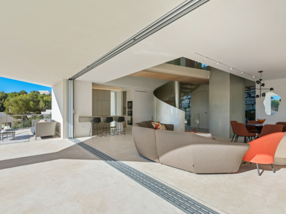 Welkom in een innovatieve en duurzaam ontworpen architectonische villa, geïnspireerd door de vloeiende vormen van de natuur. Dit unieke ontwerp combineert luxe en duurzaamheid met naadloze overgangen tussen binnen- en buitenruimtes. Dankzij intrekbare wanden ervaart u een flexibele woonomgeving waarin natuur en architectuur perfect samensmelten.