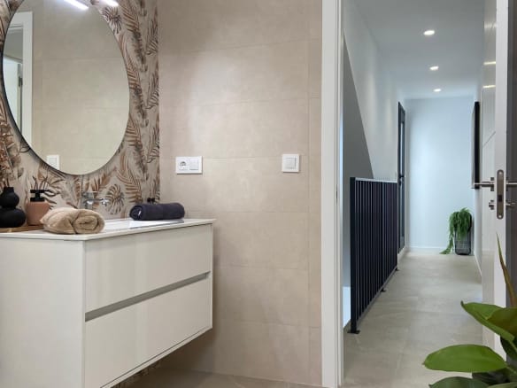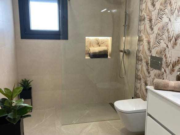 De villa’s beschikken over ruime terrassen en een solarium op het dak, zodat je het hele jaar door kunt genieten van het zonnige Mediterrane klimaat. Elke woning is ontworpen in een eigentijdse stijl en heeft 3 slaapkamers en 2 badkamers, met een inloopkast in de hoofdslaapkamer. De open indeling bestaat uit een volledig uitgeruste keuken en een lichte woonkamer-eetkamer, ideaal voor zowel ontspanning als entertainment.