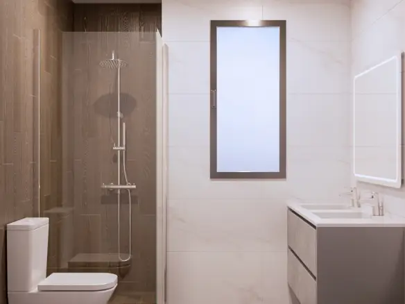 3 moderne badkamers, ontworpen met hoogwaardige afwerkingen.