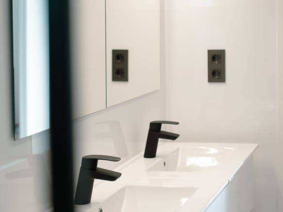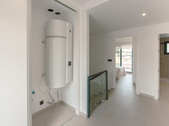 De sanitaire warmwatervoorziening verloopt via een 150-liter muur gemonteerde warmtepomp (aerothermisch). De woningen beschikken over ingebouwde kasten met lades, voorbereiding voor airconditioning via luchtkanalen en indirecte verlichting door de hele woning en in de buitenruimtes, met aansluitpunten voor sfeerverlichting in de eetkamer en slaapkamers.