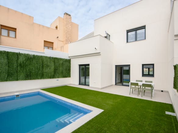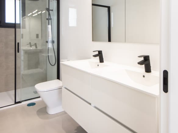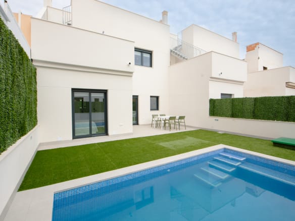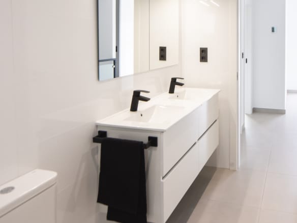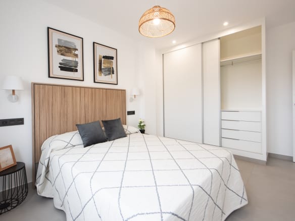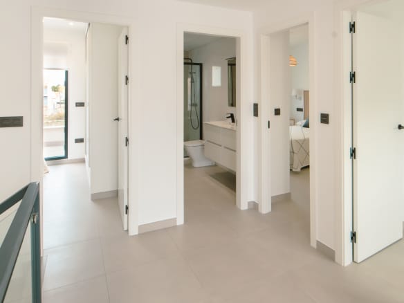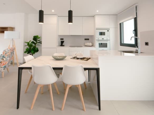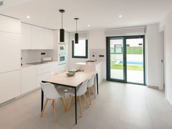 De woningen voldoen aan de hoogste kwaliteitsnormen en zijn voorzien van een privézwembad met douche, volledig ingerichte badkamers inclusief badkamermeubels, wastafel, spiegel, regendouche en douchewanden. De keuken is compleet uitgerust met boven- en onderkasten, een Silestone werkblad of vergelijkbaar, verzonken gootsteen en alle benodigde apparatuur: koelkast, oven, ingebouwde magnetron, keramische kookplaat, vaatwasser en afzuigkap.
