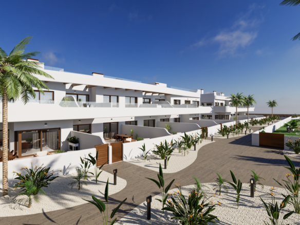 Ontdek deze exclusieve nieuwbouwappartementen, gelegen op slechts 1,5 km van het strand in Los Alcázares. Deze appartementen bieden diverse opties: kies voor een gelijkvloerse woning met tuin, een appartement op de tussenverdieping met terras, of een penthouse met eigen dakterras. U heeft de keuze uit modellen met 2 of 3 slaapkamers en 2 badkamers, waarvan sommige appartementen een prachtig uitzicht bieden op de golfbaan en de zee.