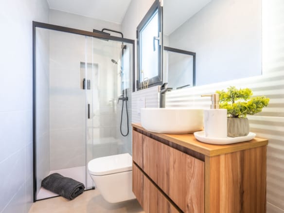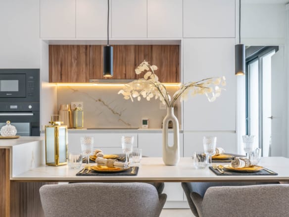 De villa’s zijn ontworpen op één niveau met verhoogde plafonds in de keuken. Elke villa beschikt over een terras rondom de begane grond en een groot privé-solarium op de eerste verdieping, zodat u het hele jaar door van de zon kunt genieten.