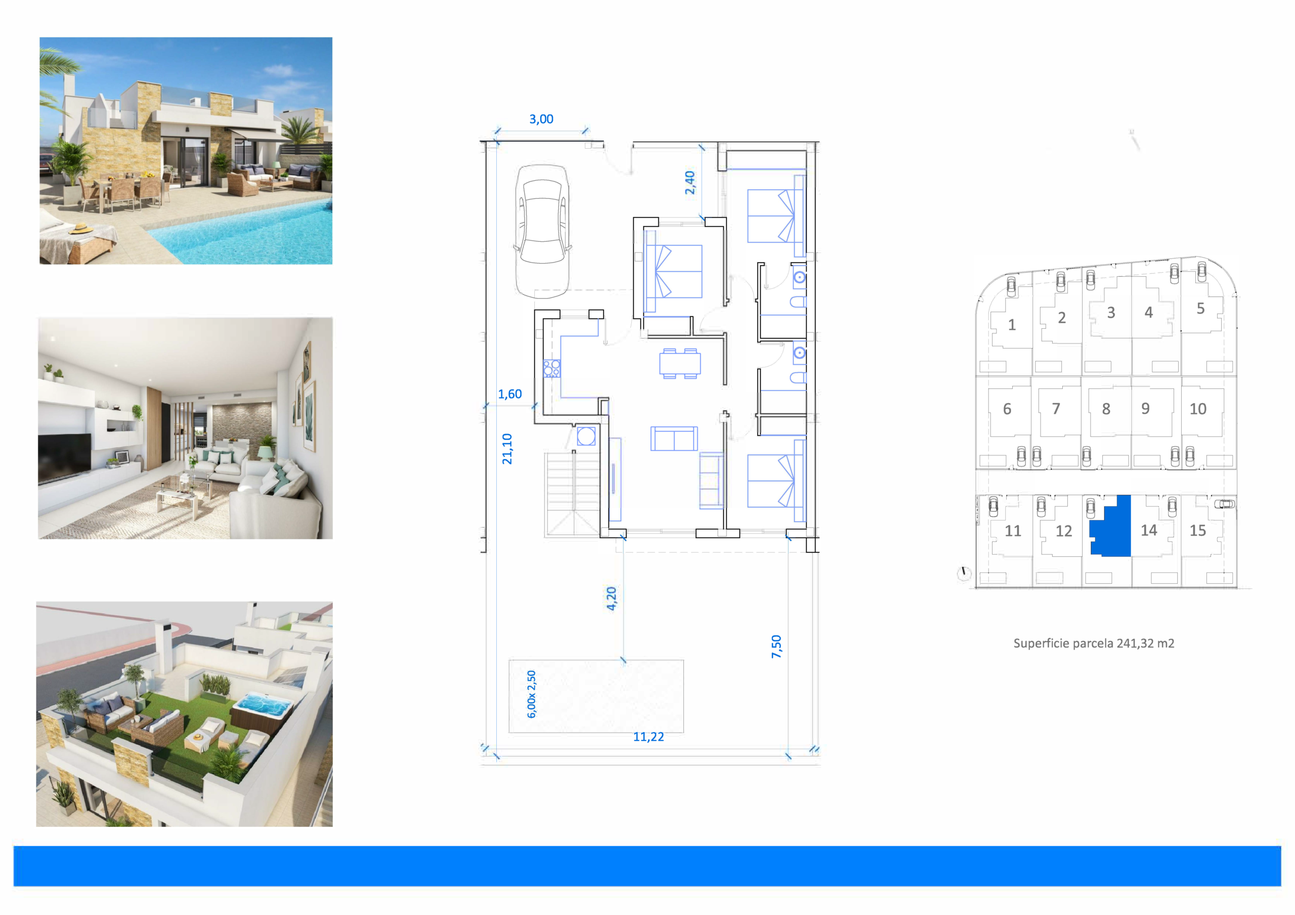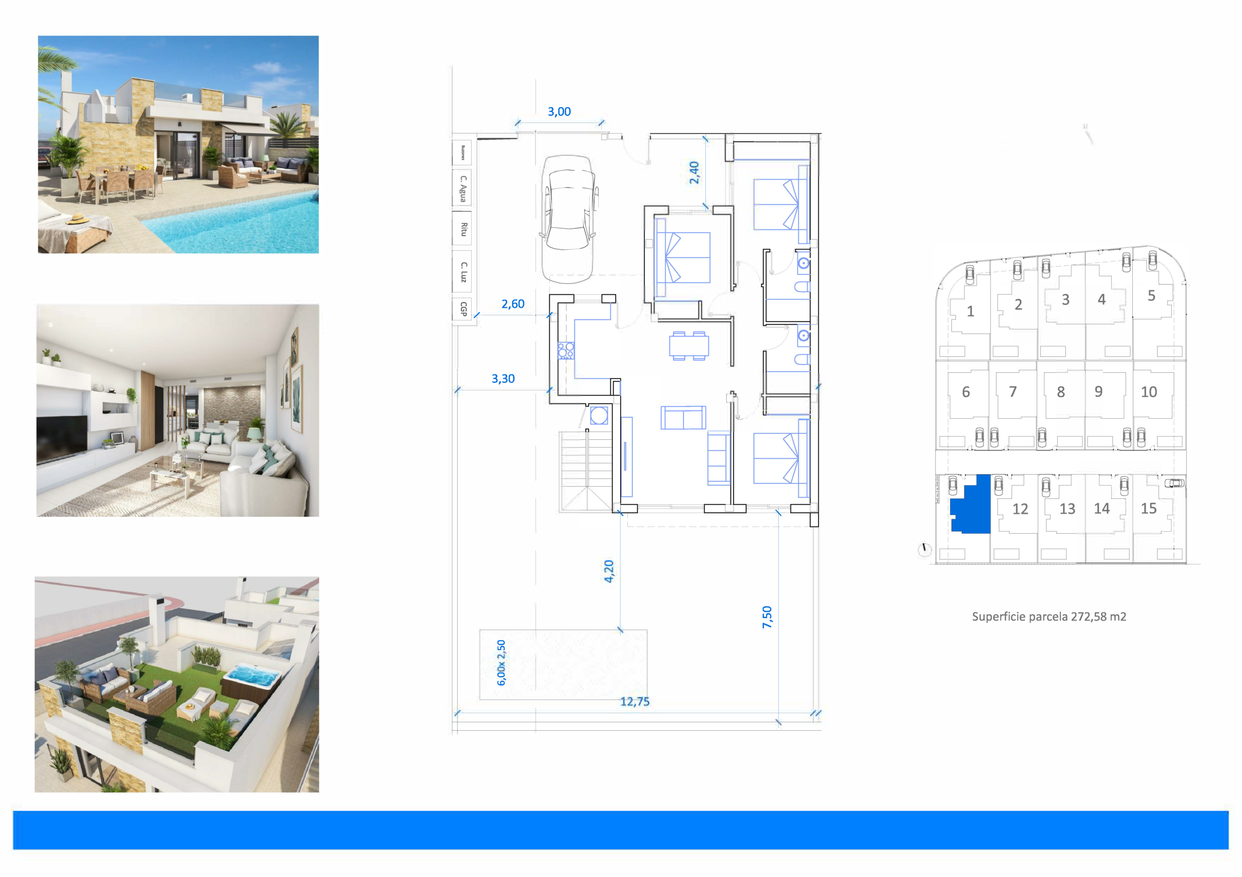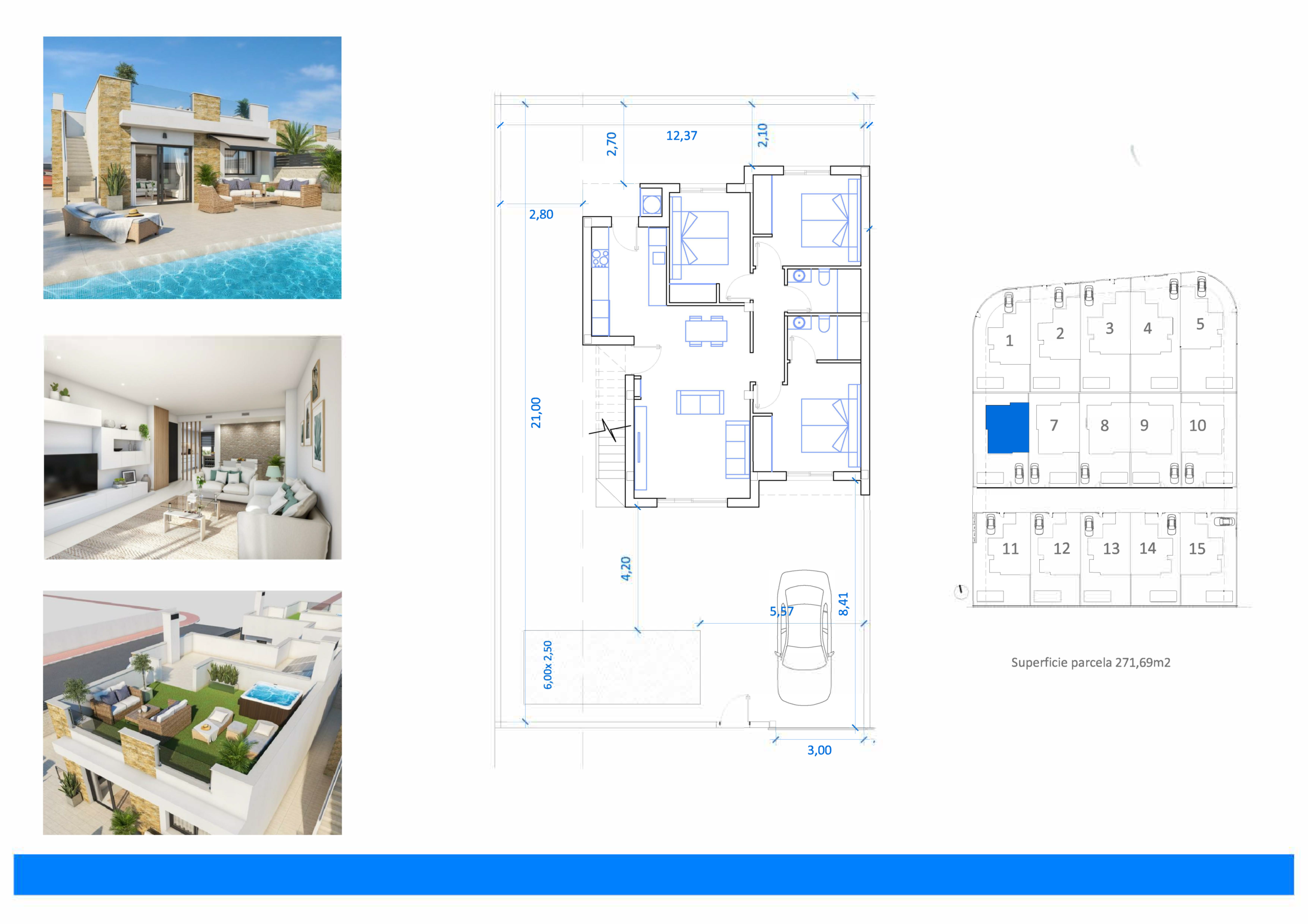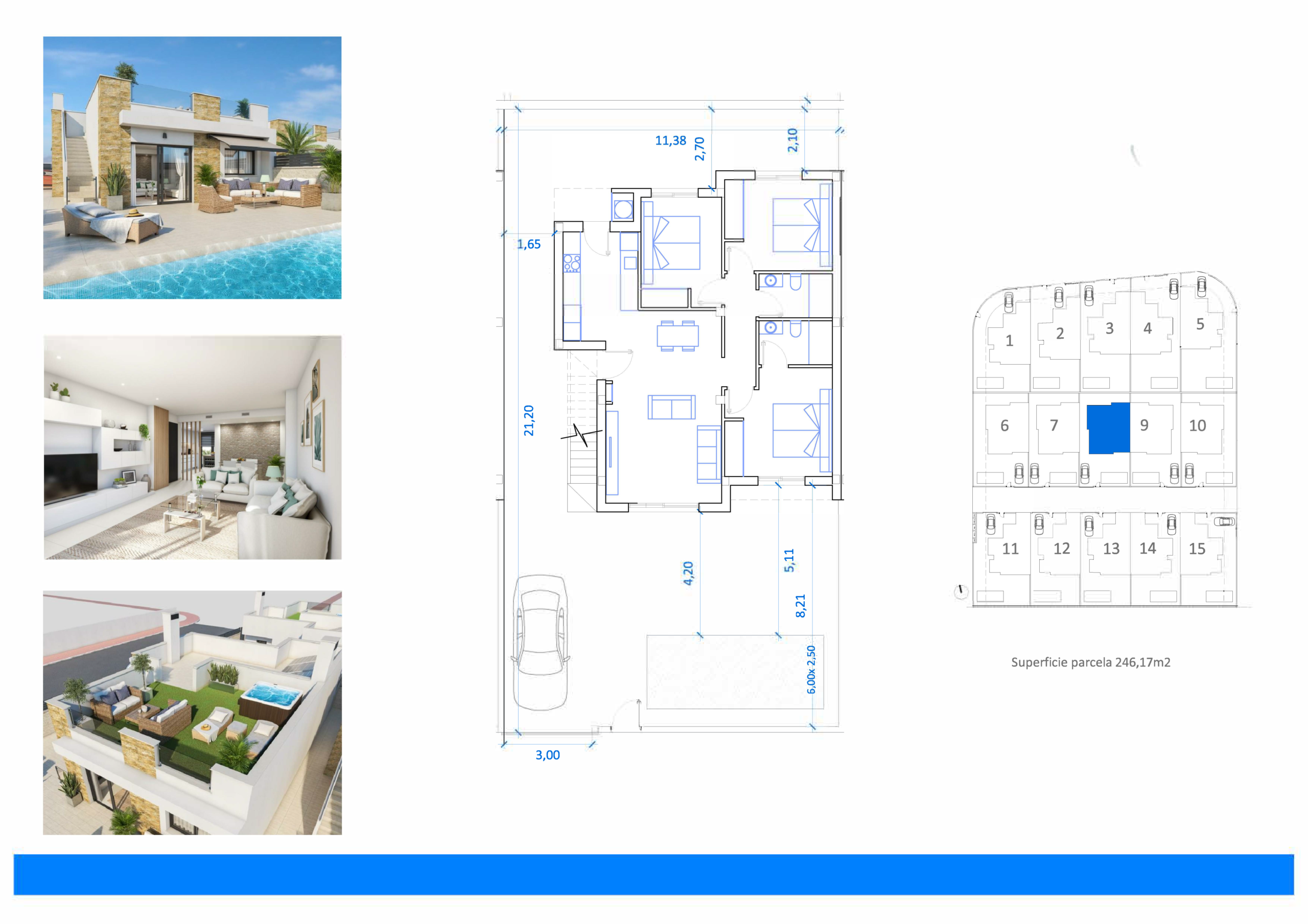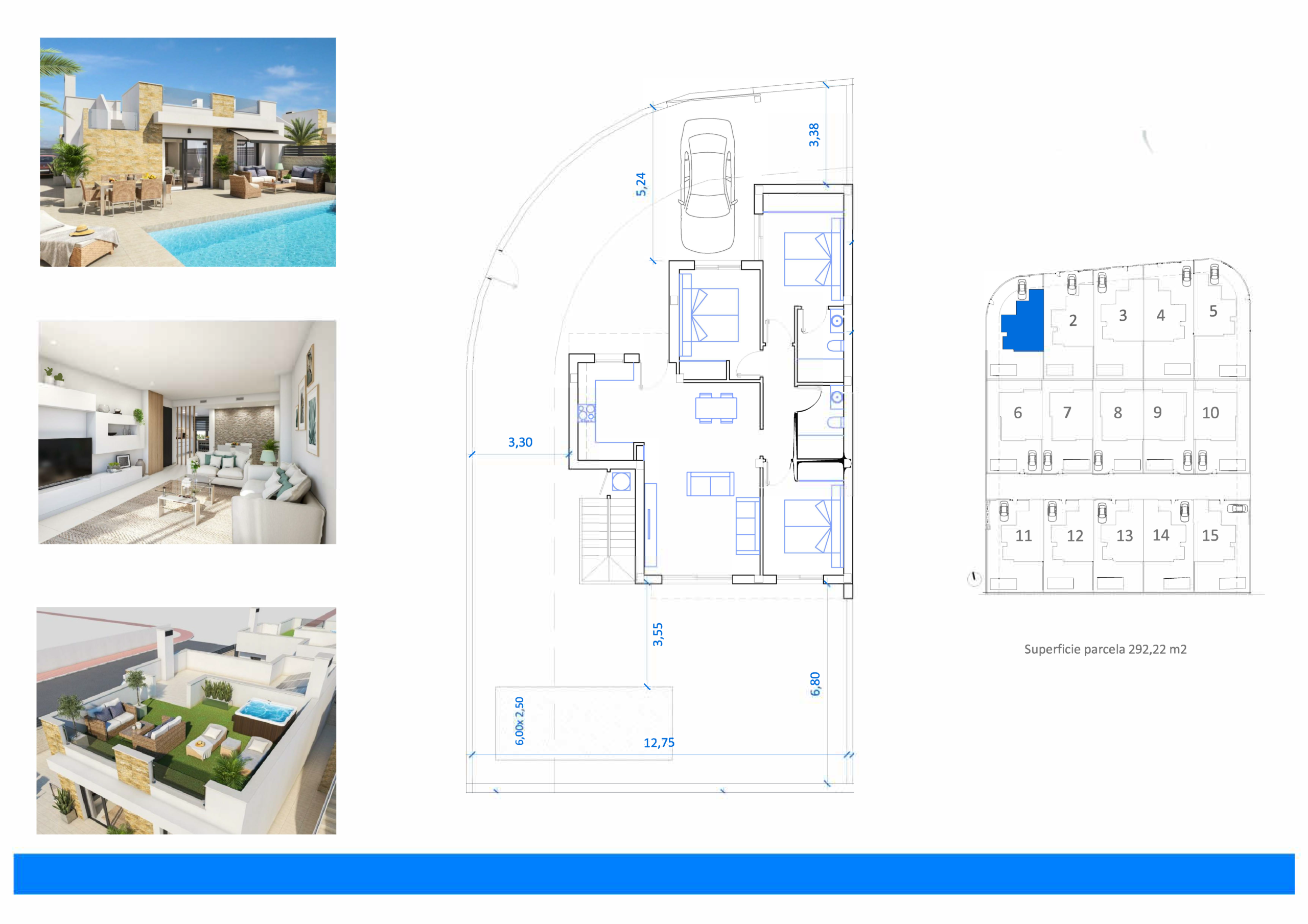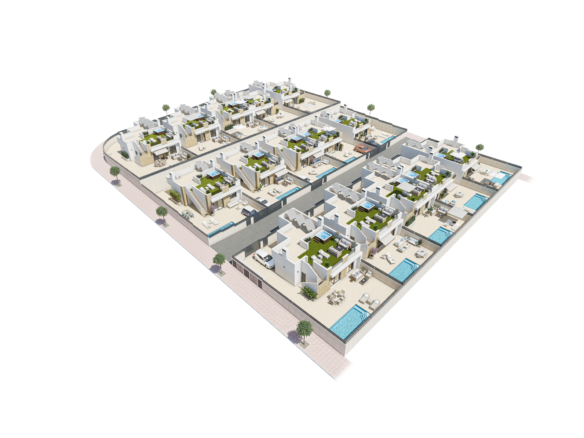 Nieuwbouw villa’s La Marina zijn unifamiliare woningen met drie slaapkamers en twee badkamers, een comfortabele woonkamer en een keuken. Buiten geniet je van een privé zwembad en een solarium, waardoor je het hele jaar door optimaal gebruikmaakt van het buitenleven. Parkeren doe je op eigen terrein, met privé parking bij de woning.