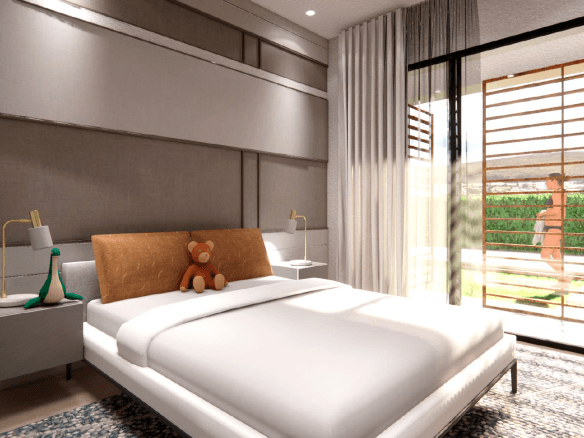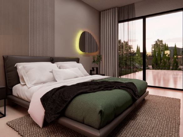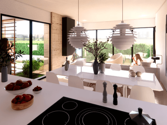 Elke villa beschikt over 3 slaapkamers en 3 volledig ingerichte badkamers. Het ontwerp is eigentijds, met een open indeling die een volledig uitgeruste keuken en een sfeervolle woon-eetkamer omvat.