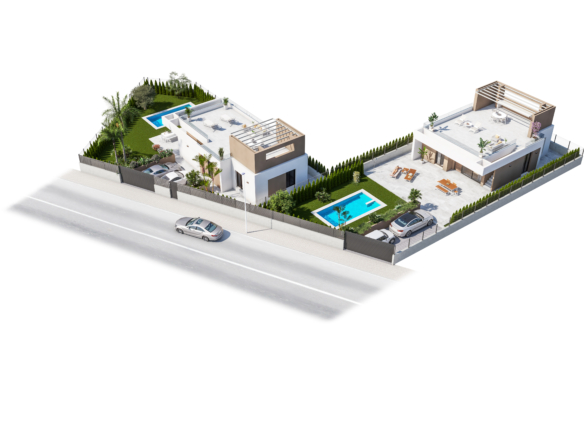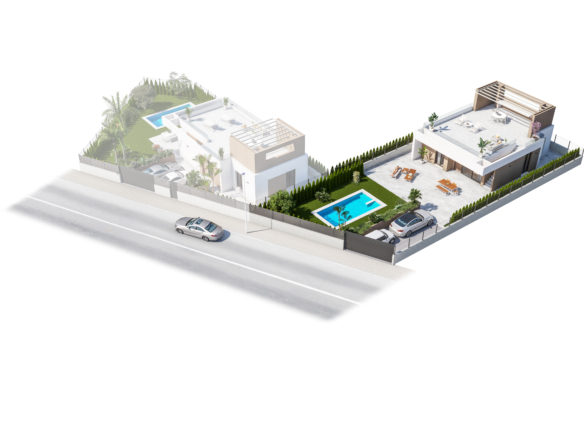 Elke villa biedt 3 of 4 slaapkamers en 2 of 3 complete badkamers, een privézwembad met warmtepomp en een eigen parkeerplaats op het perceel. Bovendien is er een pre-installatie aanwezig voor een laadpunt voor elektrische voertuigen. Alles voor maximaal wooncomfort op een toplocatie.