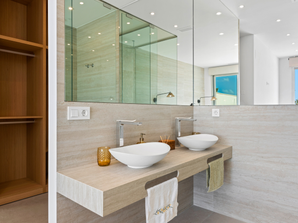 Dankzij de slimme L-vormige indeling baadt het interieur in een overvloed van natuurlijk licht. Elke ruimte, van de ruime woonkamers tot de gezellige slaapkamers, geniet van een frisse bries en adembenemend uitzicht op de prachtige buitenruimtes van de woning. Dit ontwerp zorgt ervoor dat de bewoners in elke hoek van de villa kunnen genieten van de natuurlijke schoonheid die hen omringt.